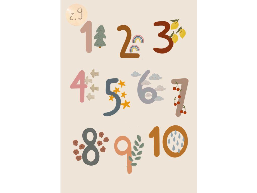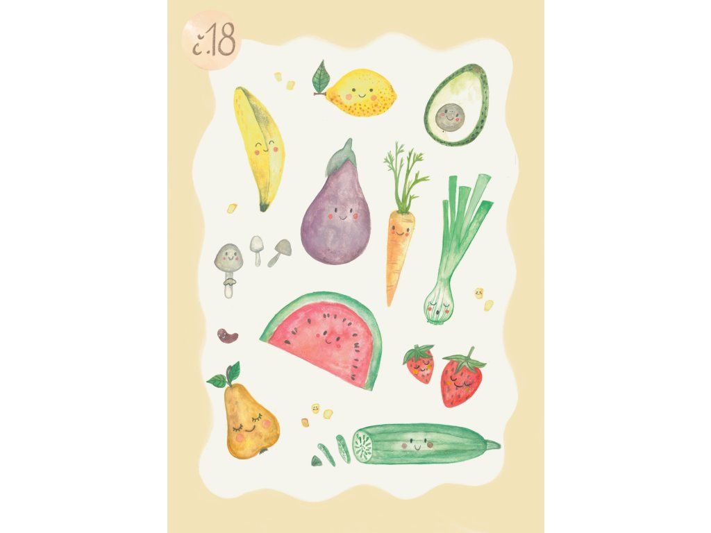 - barvy: zelená, pastelově růžová, lila, světle modrá, světle žlutá