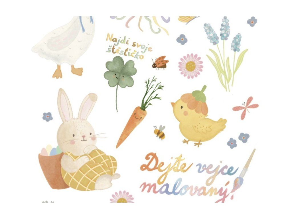 Na archu najdete zajíčka s košíkem, kuřátko, husu, květiny, motýlky, včelky, čtyřlístek pro štěstí i další drobné motivy z jarní přírody. Děti si tak mohou vybrat své oblíbené obrázky a vytvořit si vlastní malé velikonoční tetování.