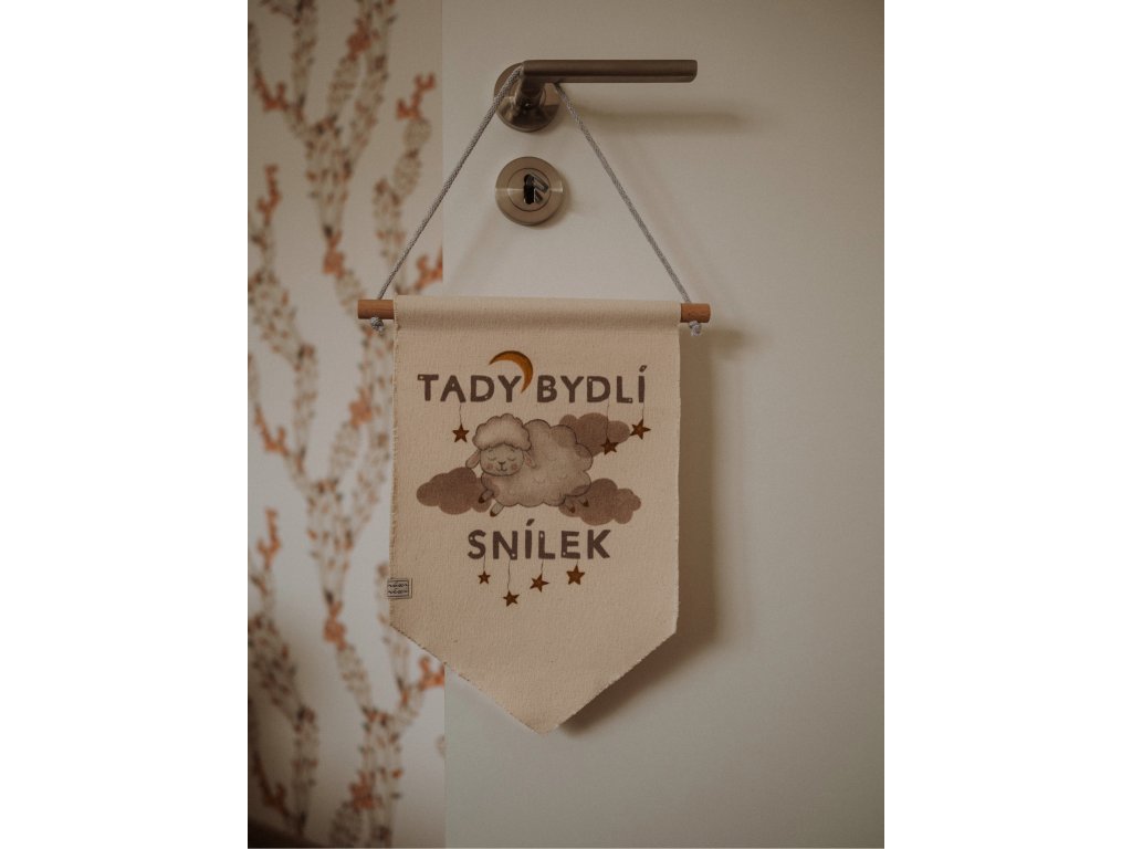 Vlaječka „Tady bydlí snílek“ je ideální pro každého malého snílka, který rád ztrácí pojem o čase v říši fantazie. S jemnou ilustrací ovečky s mráčky kolem ní přináší do dětského pokoje kouzelný nádech pohádky.